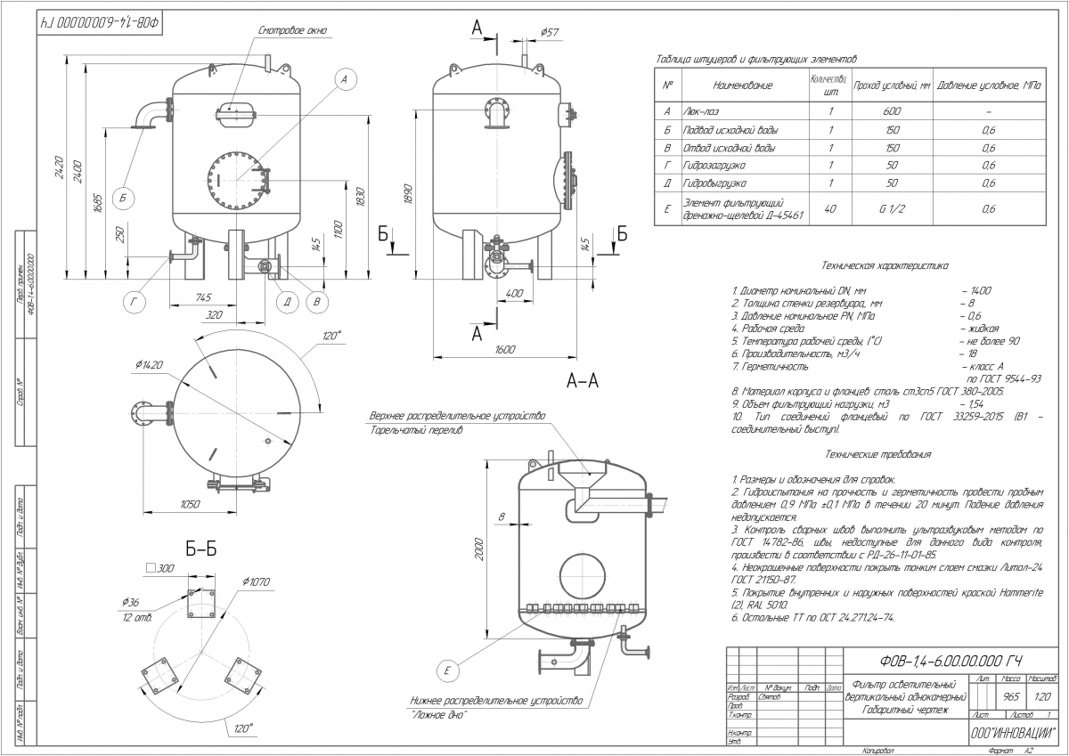 Производство серийных фильтров: ФОВ-1,0-0,6; ФОВ-1,4-0,6; ФОВ-1,5-0,6; ФОВ-2,0-0,6; ФОВ-2,6-0,6; ФОВ-3,0-0,6; ФОВ-3,4-0,6.